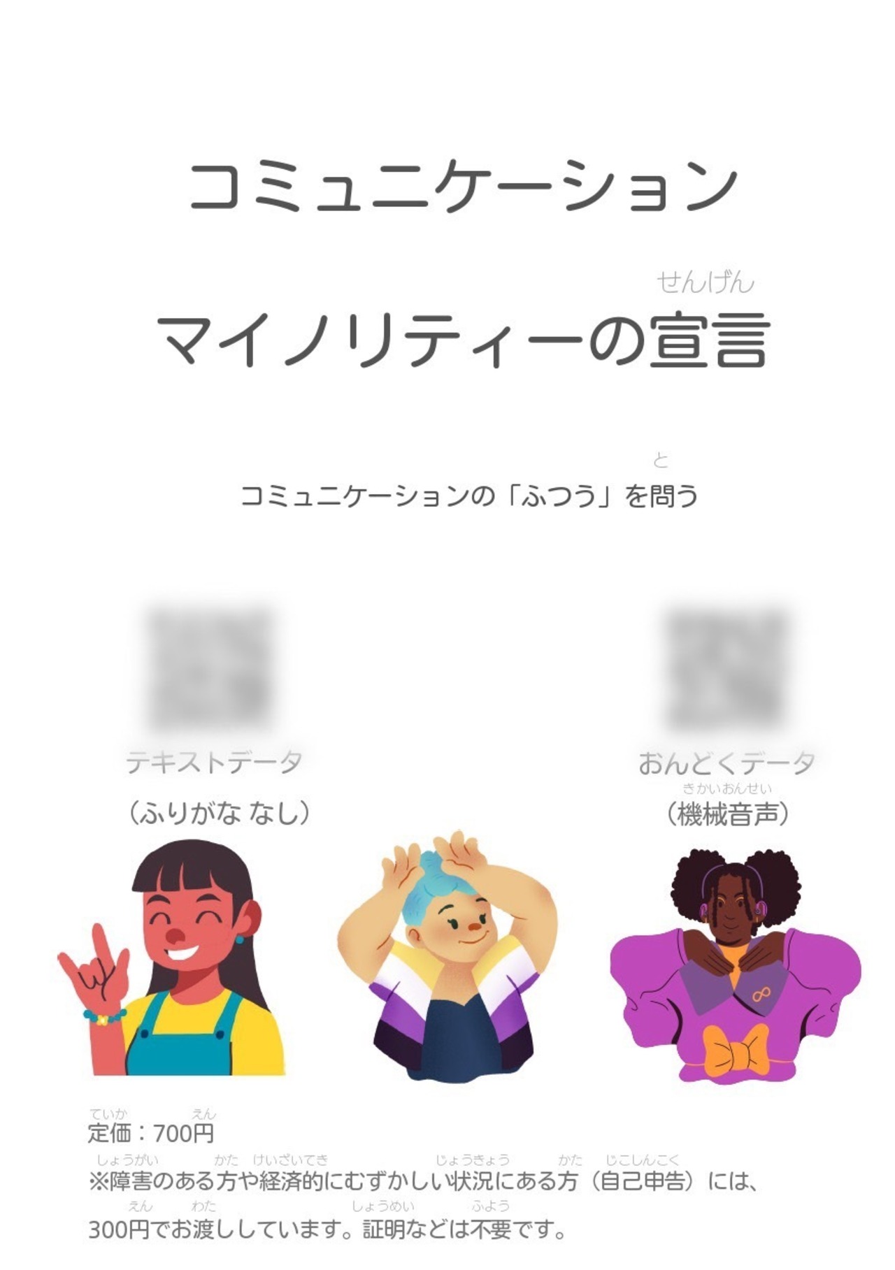 定価は700円ですが、障害のある方や、経済的にむずかしい状況にある方には300円で提供しています(証明などは不要です)。こちらは700円のページです。